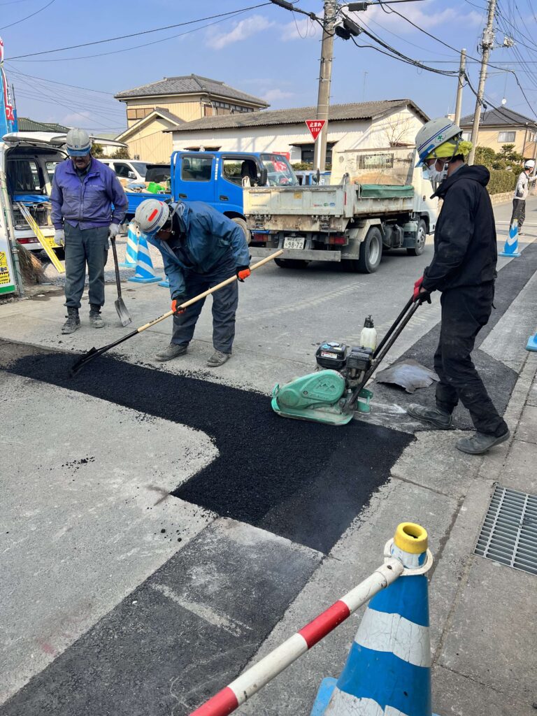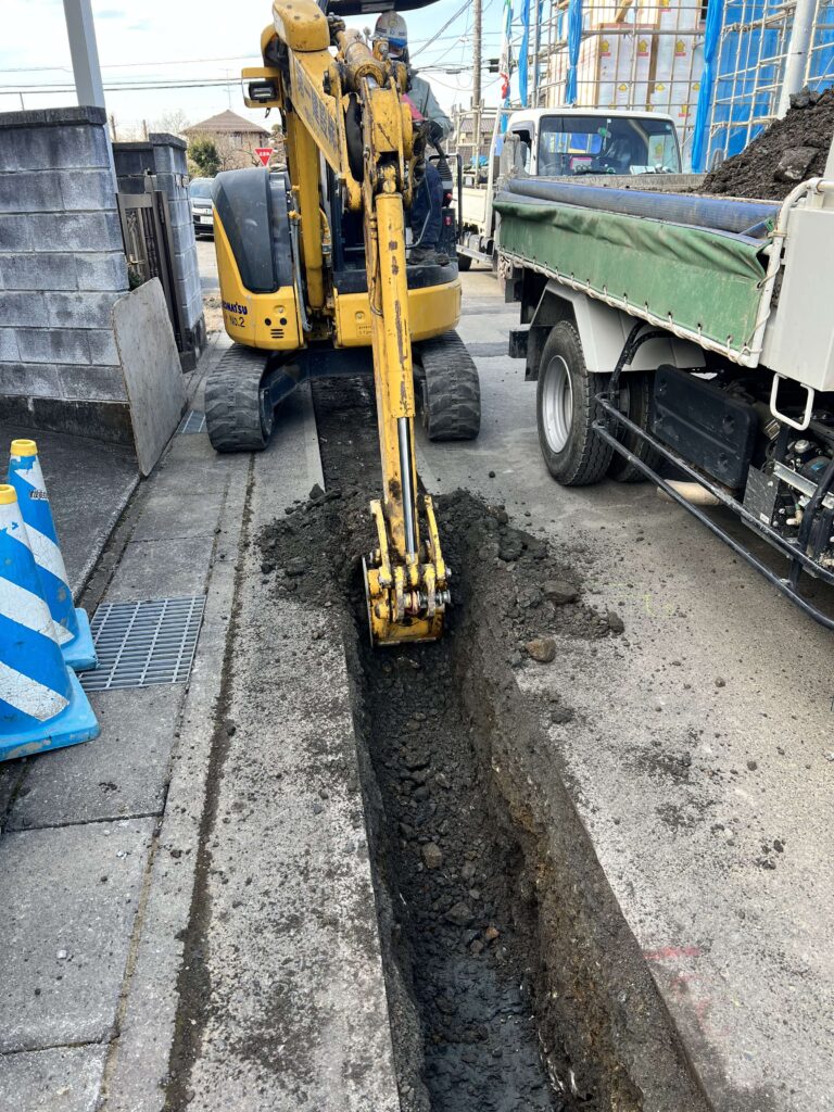 作業は掘削、配管、埋戻し、仮舗装の順に日々行います